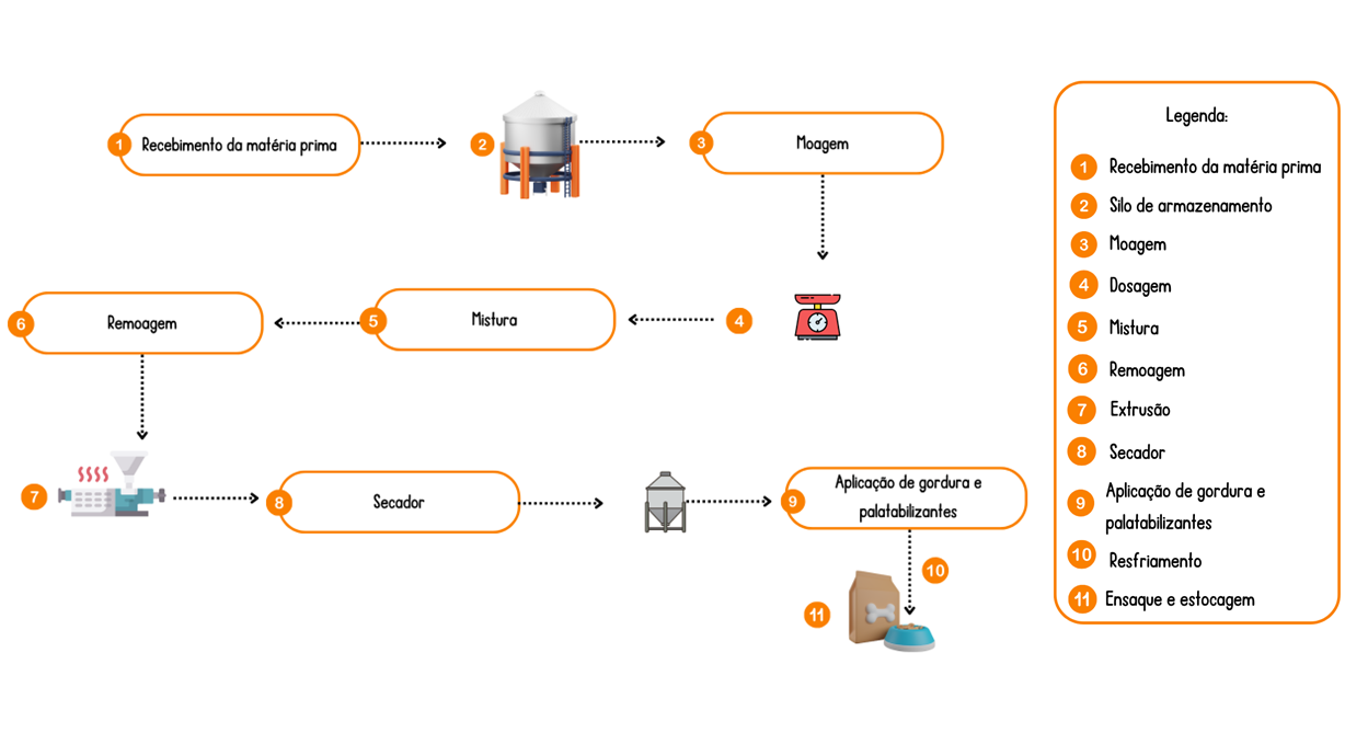 Confira quais são os principais estágios envolvidos na produção da ração seca para cães e gatos. garantindo qualidade e segurança.